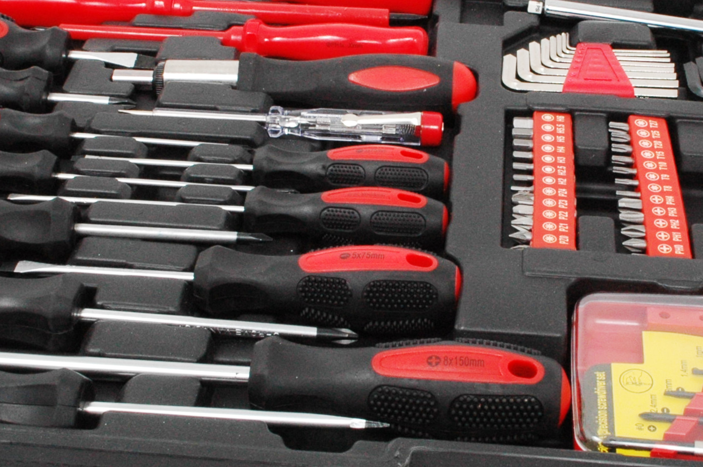 - PH: 1, 2; PZ: 1, 2; TORX: 8, 10, 15, 20, 25, 27, 30